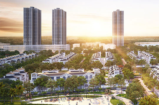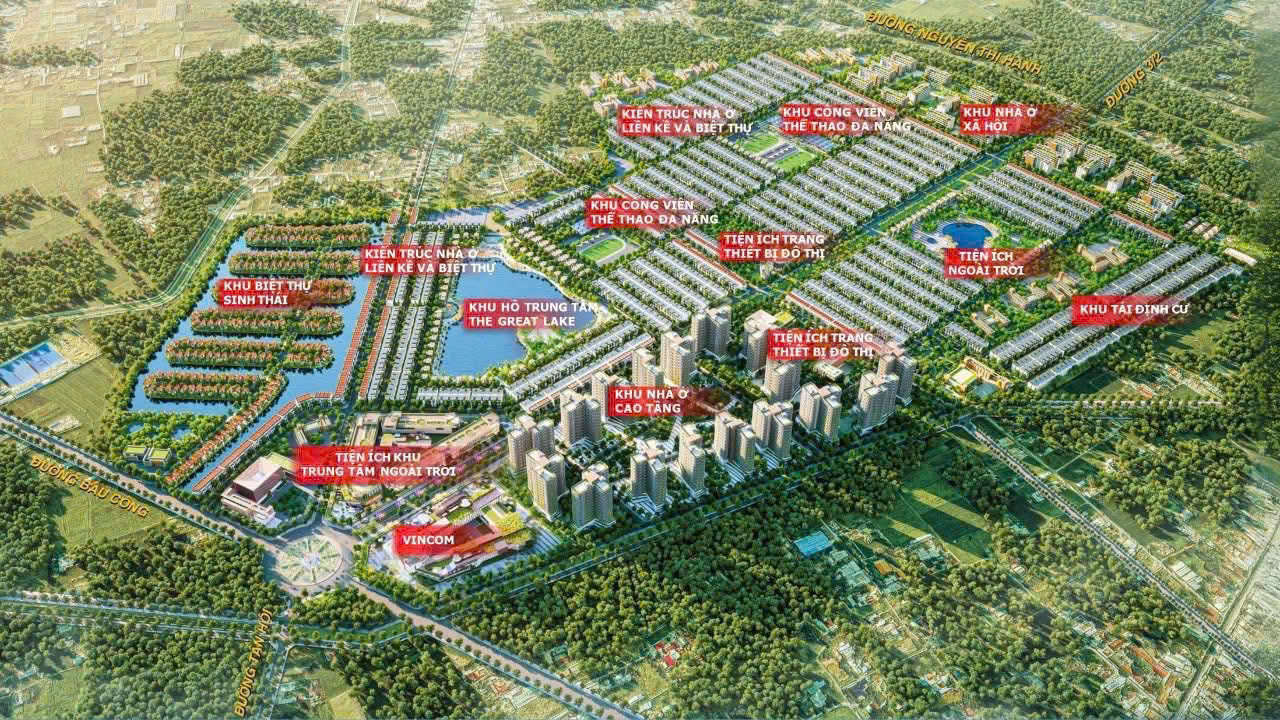 - Loại hình sản phẩm: Biệt thự đơn lập, biệt thự song lập, chung cư cao tầng (25 tầng), khu nhà ở liền kề